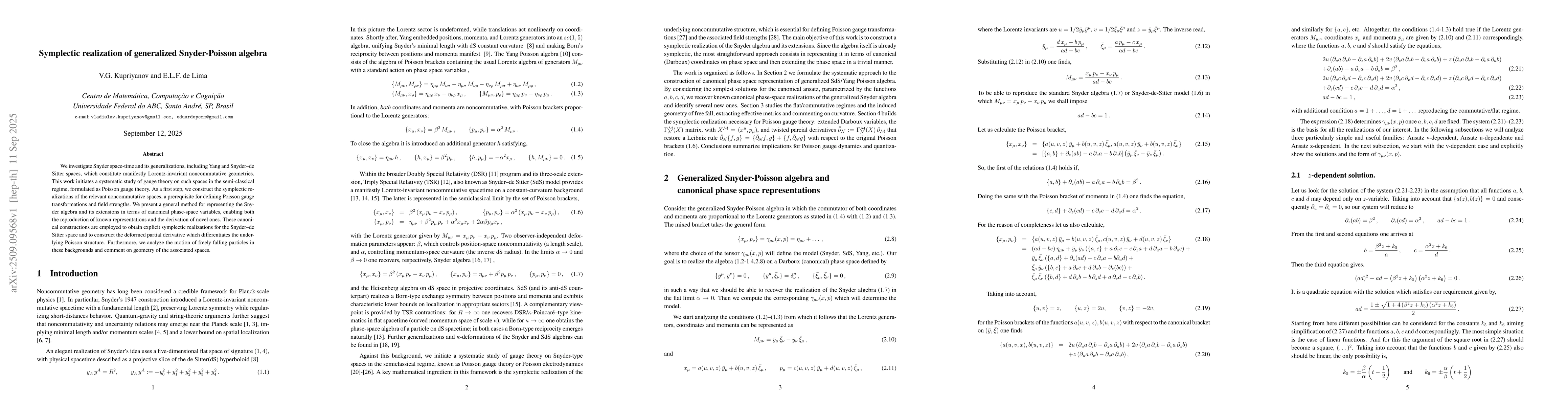We investigate Snyder space-time and its generalizations, including Yang and Snyder-de-Sitter spaces, which constitute manifestly Lorenz invariant noncommutative geometries. This work initiates a systematic study of gauge theory on such spaces in the semi-classical regime, formulated as Poisson gauge theory. As a first step, we construct the symplectic realization of the relevant noncommutative spaces, a prerequisite for defining Poisson gauge transformations and field strengths. We present a general method for representing the Snyder algebra and its extensions in terms of canonical phase space variables, enabling both the reproduction of known representations and the derivation of novel ones. These canonical constructions are employed to obtain explicit symplectic realizations for the Snyder-de-Sitter space and construct the deformed partial derivative which differentiates the underlying Poisson structure. Furthermore, we analyze the motion of freely falling particles in these backgrounds and comment on the geometry of the associated spaces.