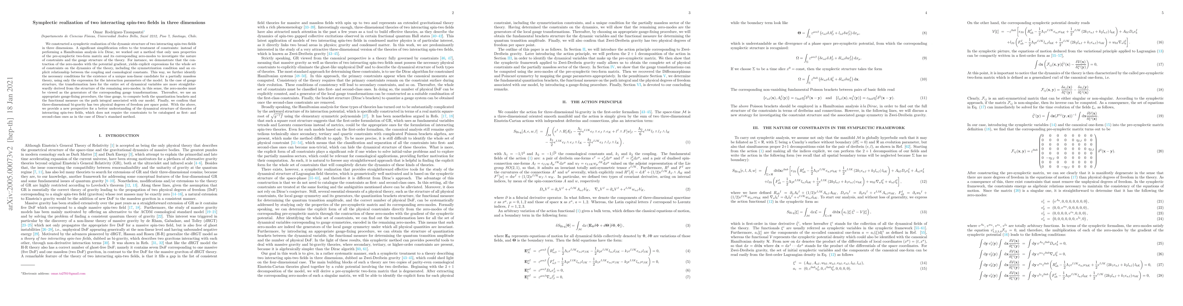 We constructed a symplectic realization of the dynamic structure of two interacting spin-two fields in three dimensions. A significant simplification refers to the treatment of constraints: instead of performing a Hamiltonian analysis $\grave{a}\, la$ Dirac, we worked out a method that only uses properties of the pre-symplectic two-form matrix and its corresponding zero-modes to investigate the nature of constraints and the gauge structure of the theory. For instance, we demonstrate that the contraction of the zero-modes with the potential gradient, yields explicit expressions for the whole set of constraints on the dynamics of the theory, including the symmetrization condition and an explicit relationship between the coupling and cosmological constants. This way, we further identify the necessary conditions for the existence of a unique non-linear candidate for a partially massless theory, using only the expression for the interaction parameters of the model. In the case of gauge structure, the transformation laws for the entire set of dynamical variables are more straightforwardly derived from the structure of the remaining zero-modes; in this sense, the zero-modes must be viewed as the generators of the corresponding gauge transformations. Thereafter, we use an appropriate gauge-fixing procedure, the time gauge, to compute both the quantization brackets and the functional measure on the path integral associated with our model. Finally, we confirm that three-dimensional bi-gravity has two physical degrees of freedom per space point. With the above, we provide a new perspective for a better understanding of the dynamical structure of theories of interacting spin-two fields, which does not require the constraints to be catalogued as first- and second-class ones as in the case of Dirac's standard method.