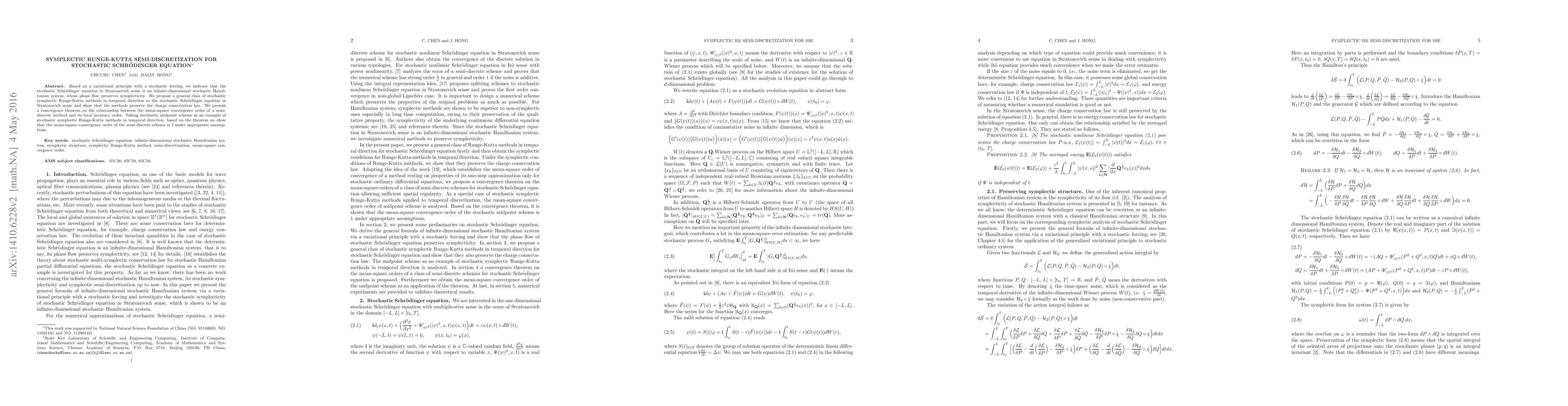 This paper develops stochastic symplectic Runge-Kutta methods for the semi-discretization of the Stratonovich stochastic Schrödinger equation, proving their preservation of symplecticity and charge conservation. It establishes a convergence theorem linking mean-square convergence order to local accuracy order, demonstrating a mean-square convergence order of 1 for the stochastic midpoint scheme under certain conditions.