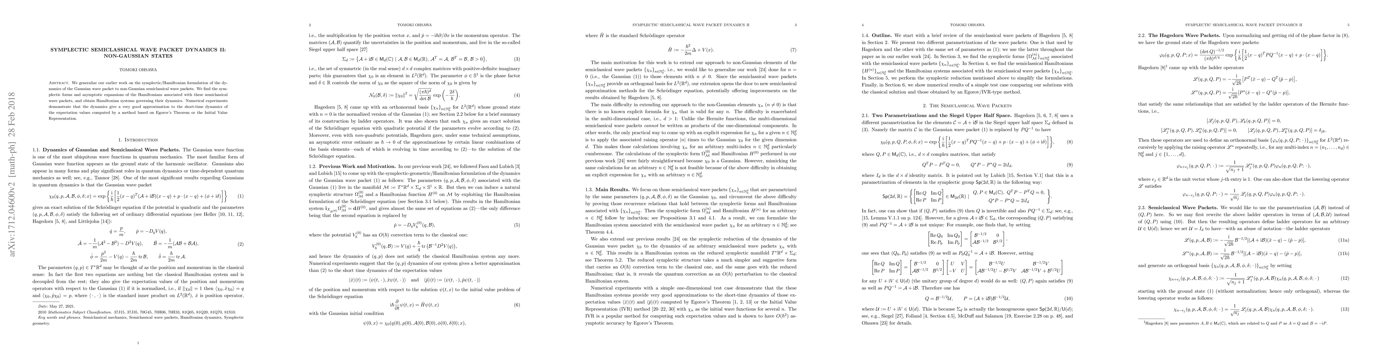 This paper extends the symplectic dynamics framework for Gaussian wave packets to non-Gaussian semiclassical wave packets, deriving associated Hamiltonian systems and demonstrating their accuracy through numerical experiments. The results provide a good approximation to the short-time dynamics of expectation values using methods based on Egorov's Theorem or the Initial Value Representation.