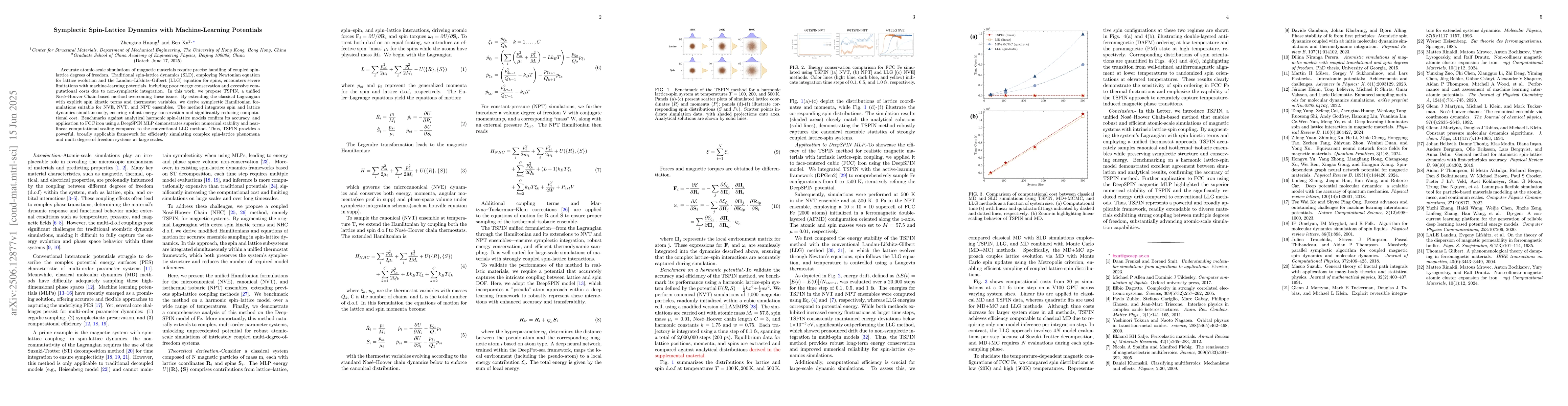 Accurate atomic-scale simulations of magnetic materials require precise handling of coupled spin-lattice degrees of freedom. Traditional spin-lattice dynamics (SLD), employing Newtonian equation for lattice evolution and the Landau-Lifshitz-Gilbert (LLG) equation for spins, encounters severe limitations with machine-learning potentials, including poor energy conservation and excessive computational costs due to non-symplectic integration. In this work, we propose TSPIN, a unified Nos\'e-Hoover Chain-based method overcoming these issues. By extending the classical Lagrangian with explicit spin kinetic terms and thermostat variables, we derive symplectic Hamiltonian formulations suitable for NVE, NVT, and NPT ensembles. The method integrates spin and lattice dynamics simultaneously, ensuring robust energy conservation and significantly reducing computational cost. Benchmarks against analytical harmonic spin-lattice models confirm its accuracy, and application to FCC iron using a DeepSPIN MLP demonstrates superior numerical stability and near-linear computational scaling compared to the conventional LLG method. Thus, TSPIN provides a powerful, broadly applicable framework for efficiently simulating complex spin-lattice phenomena and multi-degree-of-freedom systems at large scales.