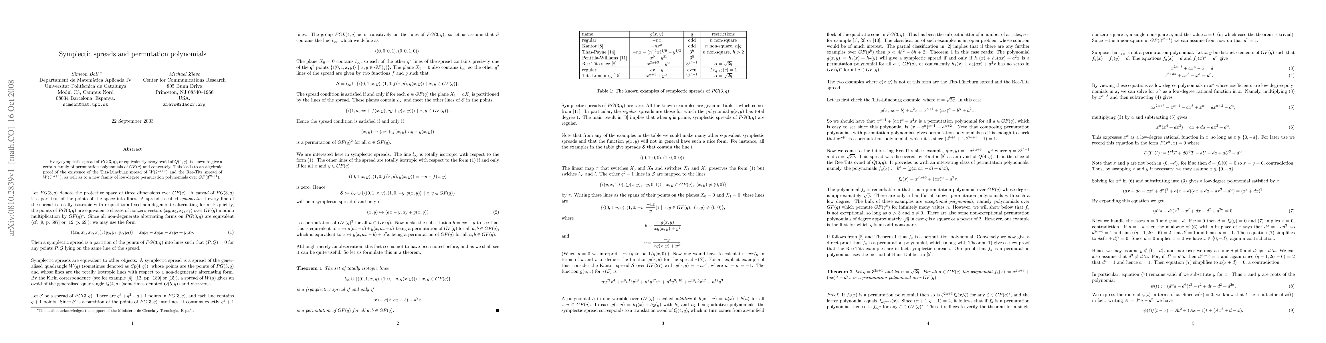 Summary: This paper establishes a connection between symplectic spreads in projective geometry and permutation polynomials, leading to new low-degree permutation polynomials and proving their properties. These polynomials were later utilized to construct new skew Hadamard difference sets.