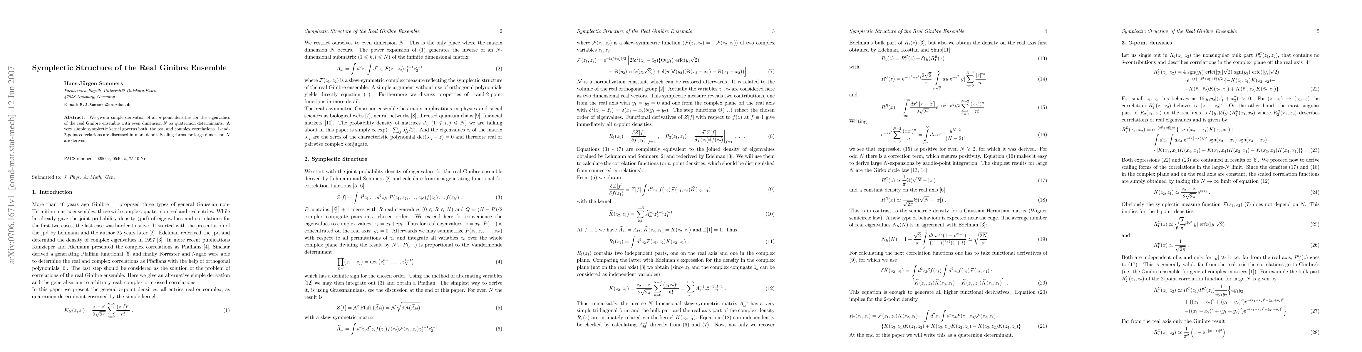 The research paper provides a simple derivation of the eigenvalue densities for the real Ginibre ensemble in even dimensions, linking them to quaternion determinants with a symplectic kernel. It also explores correlations and scaling forms for large dimensions.