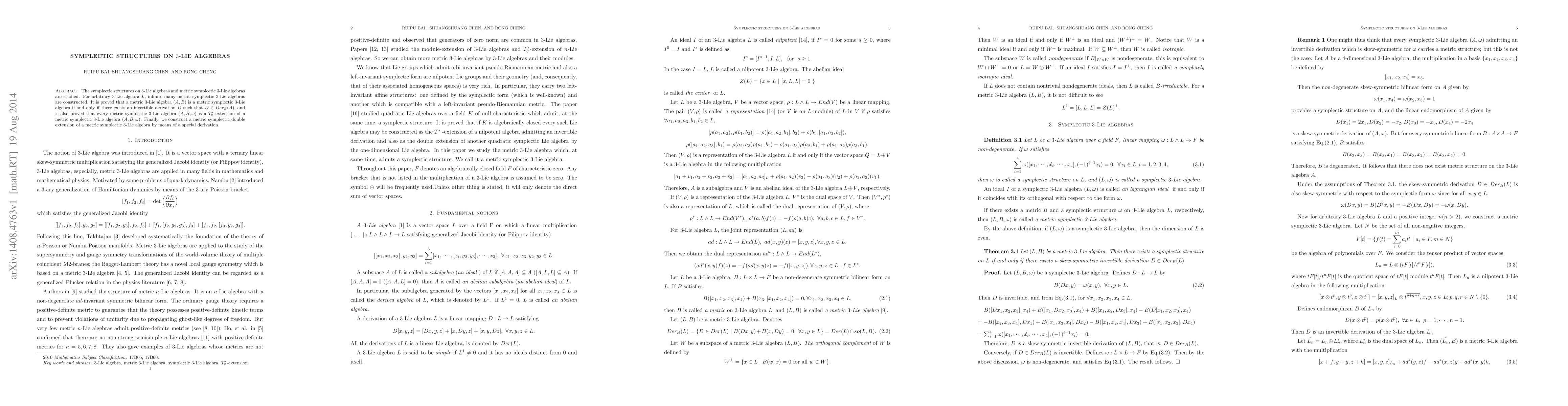 This paper explores symplectic structures on $3$-Lie algebras, constructing infinite metric symplectic $3$-Lie algebras from arbitrary $3$-Lie algebras. It establishes criteria for a metric $3$-Lie algebra to be metric symplectic, and shows that every such algebra is a $T^*_{\theta}$-extension of a simpler metric symplectic $3$-Lie algebra. The paper concludes with the construction of a metric symplectic double extension using a special derivation.