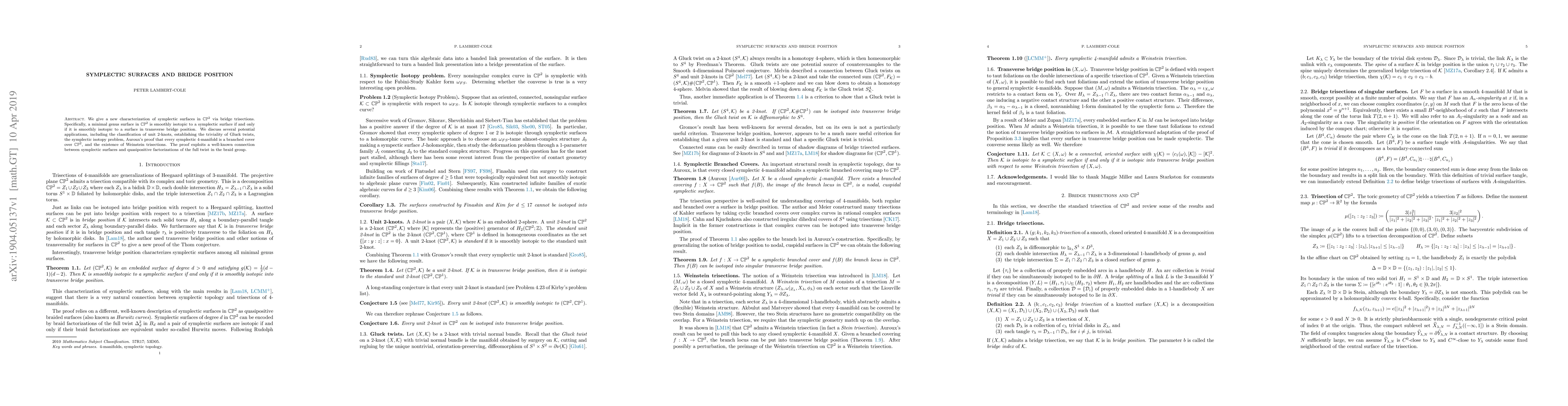 This paper characterizes symplectic surfaces in CP^2 through bridge trisections, proving that a minimal genus surface is smoothly isotopic to a symplectic surface if it is in transverse bridge position. The implications include applications in classifying unit 2-knots and resolving the symplectic isotopy problem.