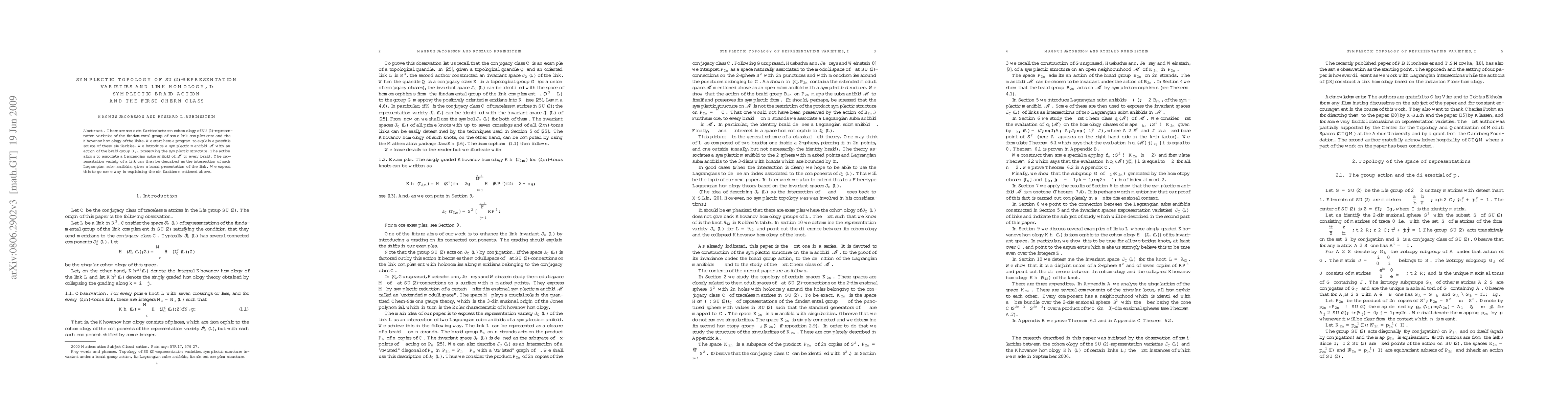 There are some similarities between cohomology of SU(2)-representation varieties of the fundamental group of some link complements and the Khovanov homology of the links. We start here a program to explain a possible source of these similarities. We introduce a symplectic manifold ${\mathscr M}$ with an action of the braid group $B_{2n}$ preserving the symplectic structure. The action allows to associate a Lagrangian submanifold of ${\mathscr M}$ to every braid. The representation variety of a link can then be described as the intersection of such Lagrangian submanifolds, given a braid presentation of the link. We expect this to go some way in explaining the similarities mentioned above.