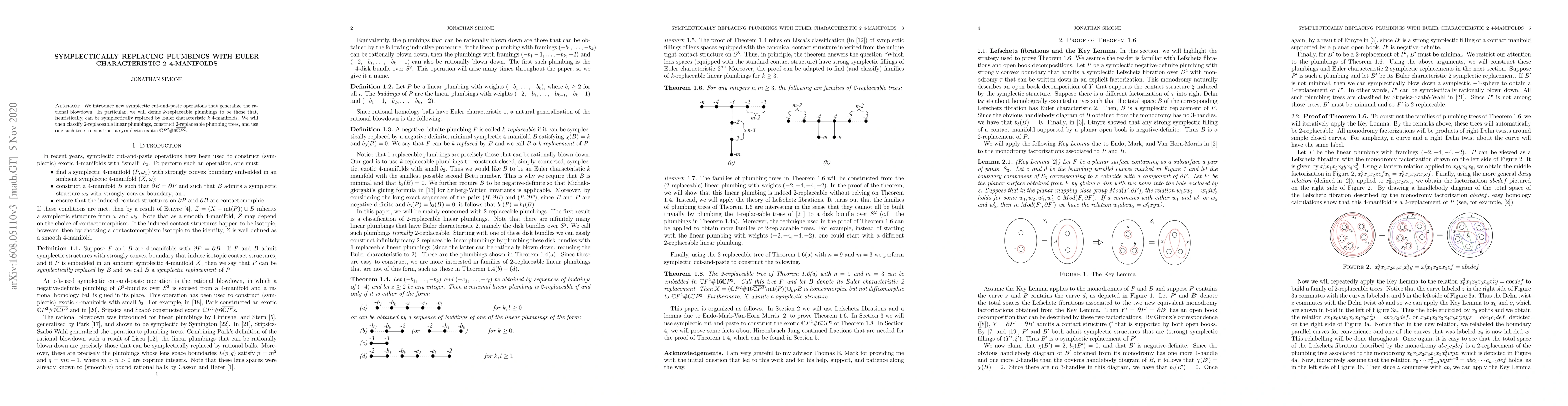 Researchers introduced new symplectic cut-and-paste operations to replace plumbing structures in 4-manifolds with Euler characteristic 2 manifolds, leading to the creation of a symplectic exotic CP^2#6∧∑CP^2.