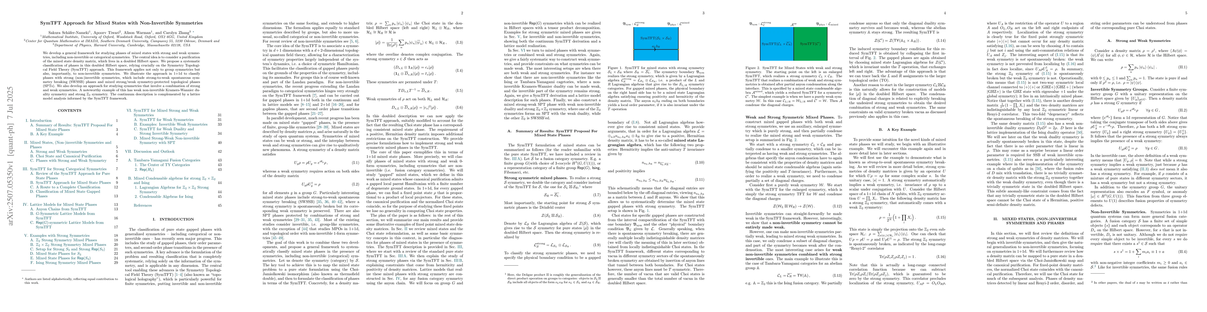 We develop a general framework for studying phases of mixed states with strong and weak symmetries, including non-invertible or categorical symmetries. The central idea is to consider a purification of the mixed state density matrix, which lives in a doubled Hilbert space. We propose a systematic classification of phases in this doubled Hilbert space, relying crucially on the Symmetry Topological Field Theory (SymTFT) approach. This framework applies not only to group symmetries but also, importantly, to non-invertible symmetries. We illustrate the approach in 1+1d to classify phases with strong (non-)invertible symmetries, which include strong-to-weak spontaneous symmetry breaking (SWSSB) phases and mixed strong/weak symmetry-protected topological phases (SPTs). We also develop an approach for studying symmetries that involve a combination of strong and weak symmetries. A noteworthy example of this has weak non-invertible Kramers-Wannier duality symmetry and strong $\mathbb{Z}_2$ symmetry. The continuum description is complemented by a lattice model analysis informed by the SymTFT framework.