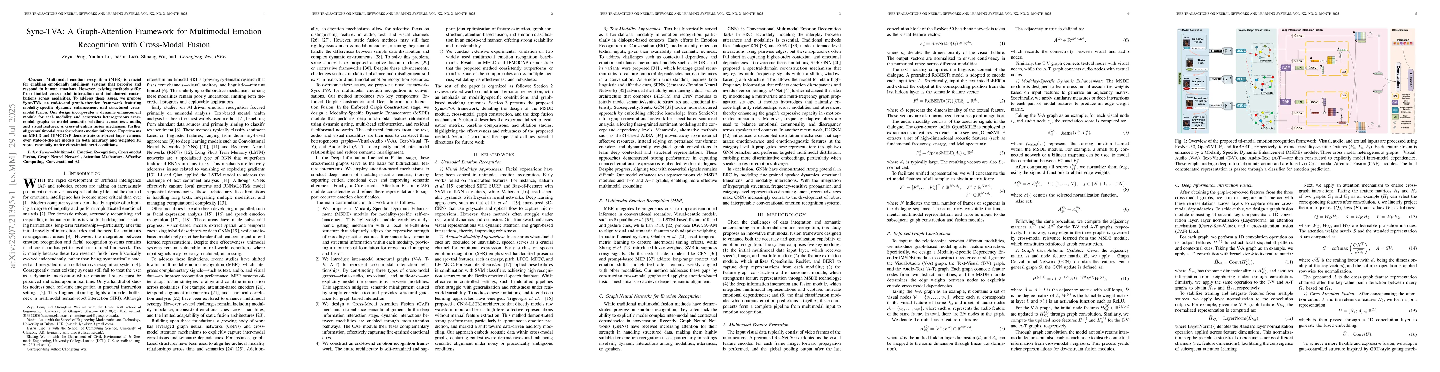 The research proposes Sync-TVA, a graph-attention framework for multimodal emotion recognition using cross-modal fusion. It features modality-specific dynamic enhancement and structured cross-modal fusion, incorporating a dynamic enhancement module for each modality and constructing heterogeneous cross-modal graphs to model semantic relations across text, audio, and visual features.