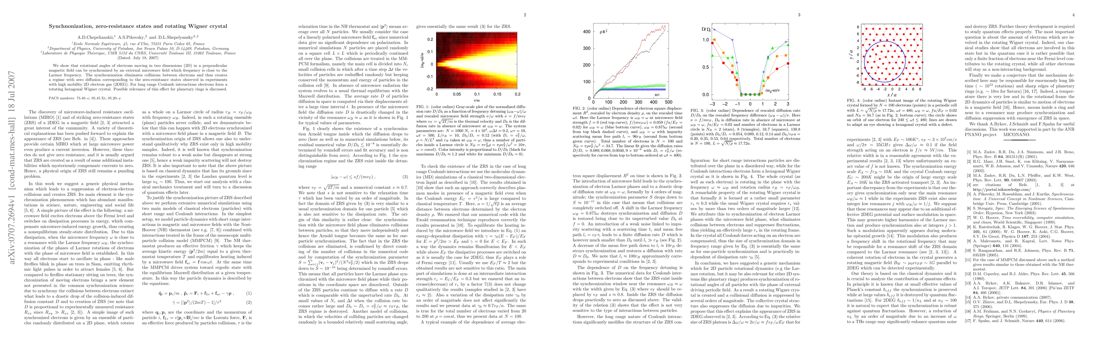Researchers found that an external microwave field can synchronize the rotational angles of electrons in a 2D material, creating zero-resistance states and a rotating Wigner crystal with long-range interactions.