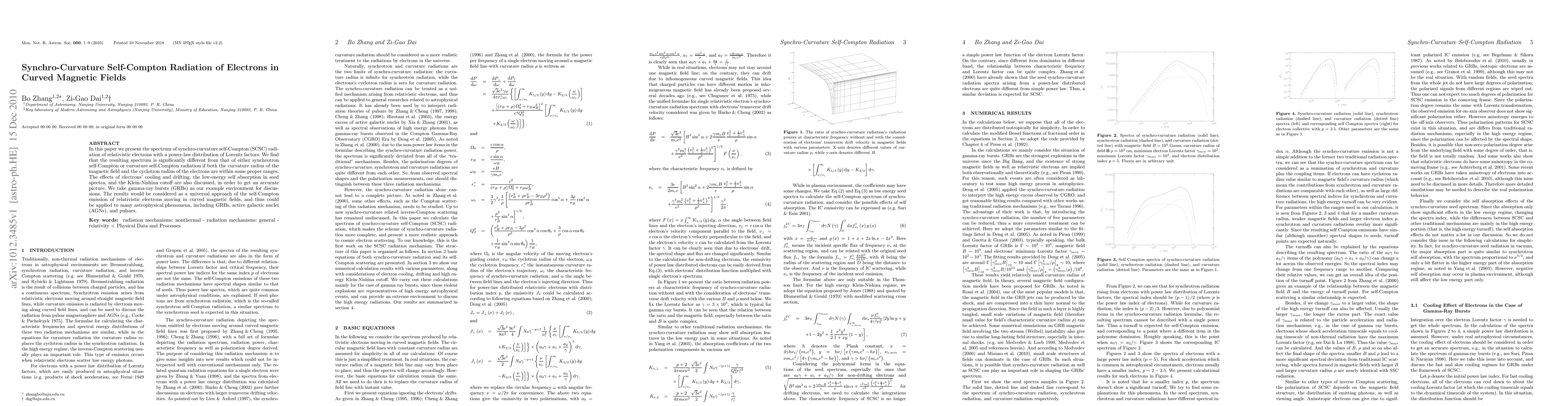 This paper explores the unique spectrum of synchro-curvature self-Compton radiation from relativistic electrons in curved magnetic fields, revealing significant differences compared to other self-Compton processes. The study also considers electron cooling, low-energy absorption, and the Klein-Nishina effect to provide a comprehensive model applicable to astrophysical phenomena like gamma-ray bursts, AGNs, and pulsars.