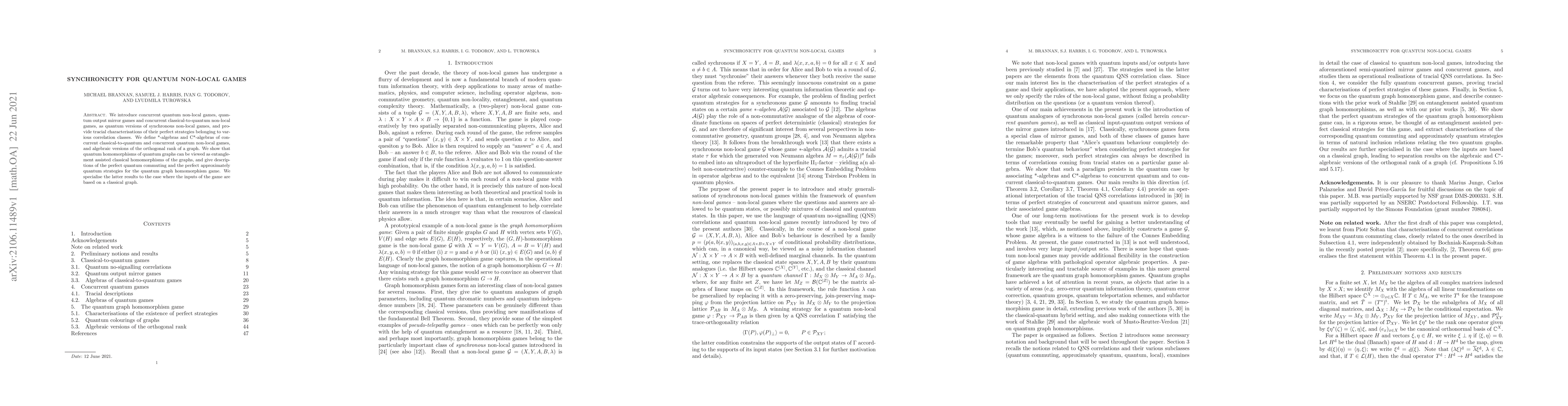 We introduce concurrent quantum non-local games, quantum output mirror games and concurrent classical-to-quantum non-local games, as quantum versions of synchronous non-local games, and provide tracial characterisations of their perfect strategies belonging to various correlation classes. We define *-algebras and C*-algebras of concurrent classical-to-quantum and concurrent quantum non-local games, and algebraic versions of the orthogonal rank of a graph. We show that quantum homomorphisms of quantum graphs can be viewed as entanglement assisted classical homomorphisms of the graphs, and give descriptions of the perfect quantum commuting and the perfect approximately quantum strategies for the quantum graph homomorphism game. We specialise the latter results to the case where the inputs of the game are based on a classical graph.