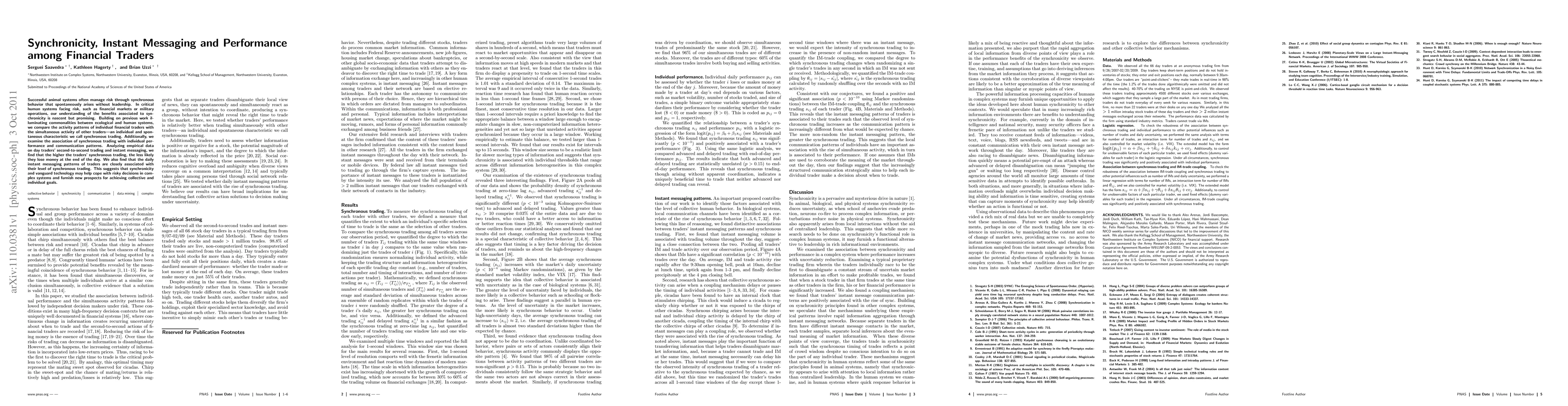 Successful financial traders exhibit synchronized behavior, showing a lower risk of loss at the end of the day when communicating through instant messaging. This synchronicity is associated with better individual performance.
