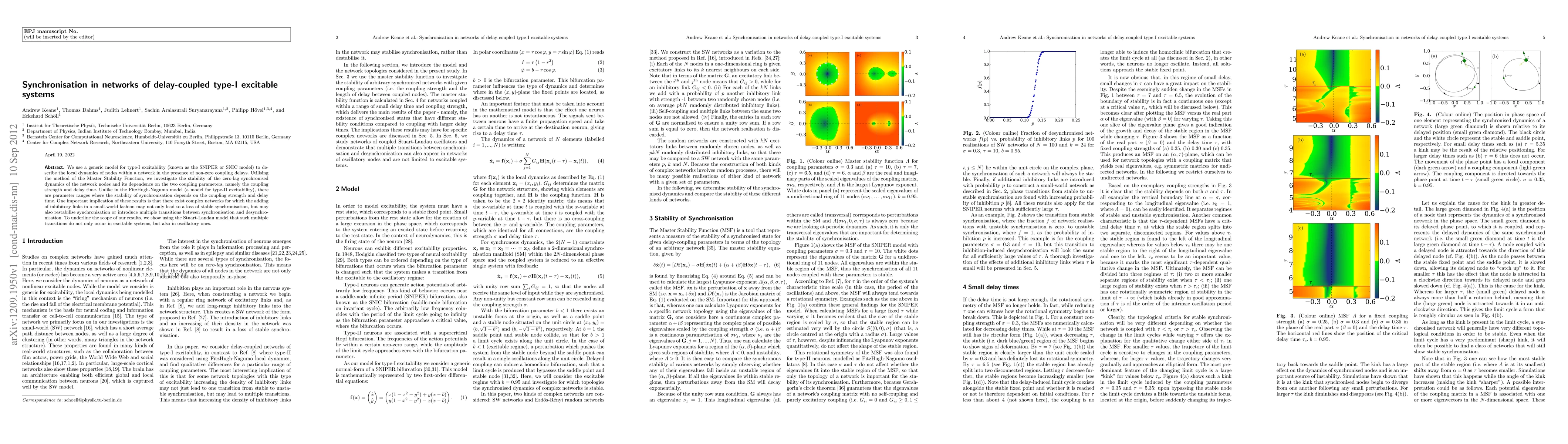 We use a generic model for type-I excitability (known as the SNIPER or SNIC model) to describe the local dynamics of nodes within a network in the presence of non-zero coupling delays. Utilising the method of the Master Stability Function, we investigate the stability of the zero-lag synchronised dynamics of the network nodes and its dependence on the two coupling parameters, namely the coupling strength and delay time. Unlike in the FitzHugh-Nagumo model (a model for type-II excitability), there are parameter ranges where the stability of synchronisation depends on the coupling strength and delay time. One important implication of these results is that there exist complex networks for which the adding of inhibitory links in a small-world fashion may not only lead to a loss of stable synchronisation, but may also restabilise synchronisation or introduce multiple transitions between synchronisation and desynchronisation. To underline the scope of our results, we show using the Stuart-Landau model that such multiple transitions do not only occur in excitable systems, but also in oscillatory ones.