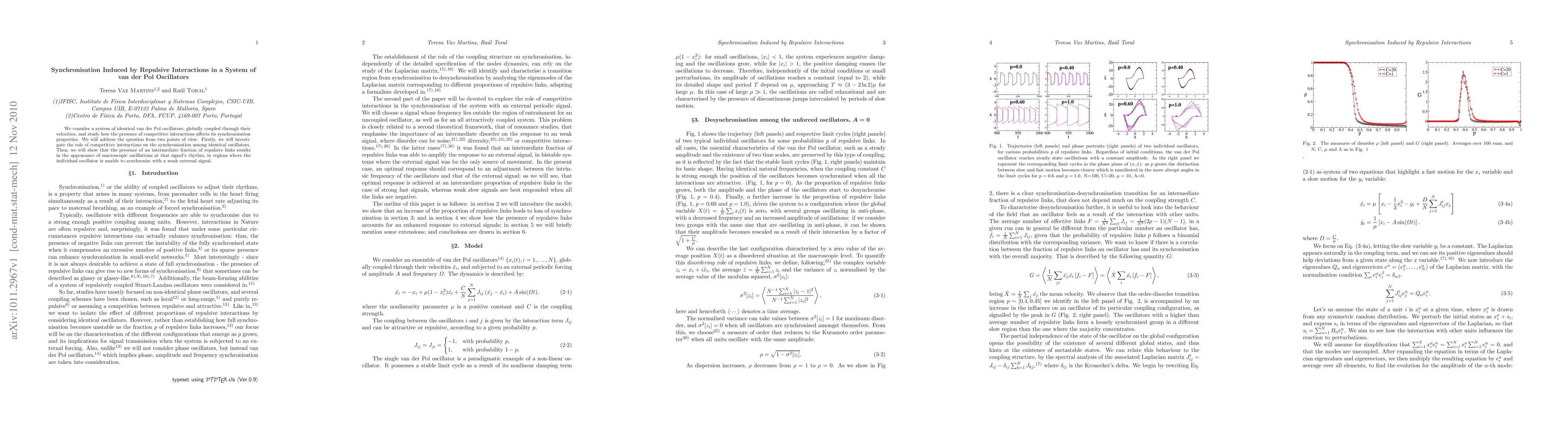 We consider a system of identical van der Pol oscillators, globally coupled through their velocities, and study how the presence of competitive interactions affects its synchronisation properties. We will address the question from two points of view. Firstly, we will investigate the role of competitive interactions on the synchronisation among identical oscillators. Then, we will show that the presence of an intermediate fraction of repulsive links results in the appearance of macroscopic oscillations at that signal's rhythm, in regions where the individual oscillator is unable to synchronise with a weak external signal.
