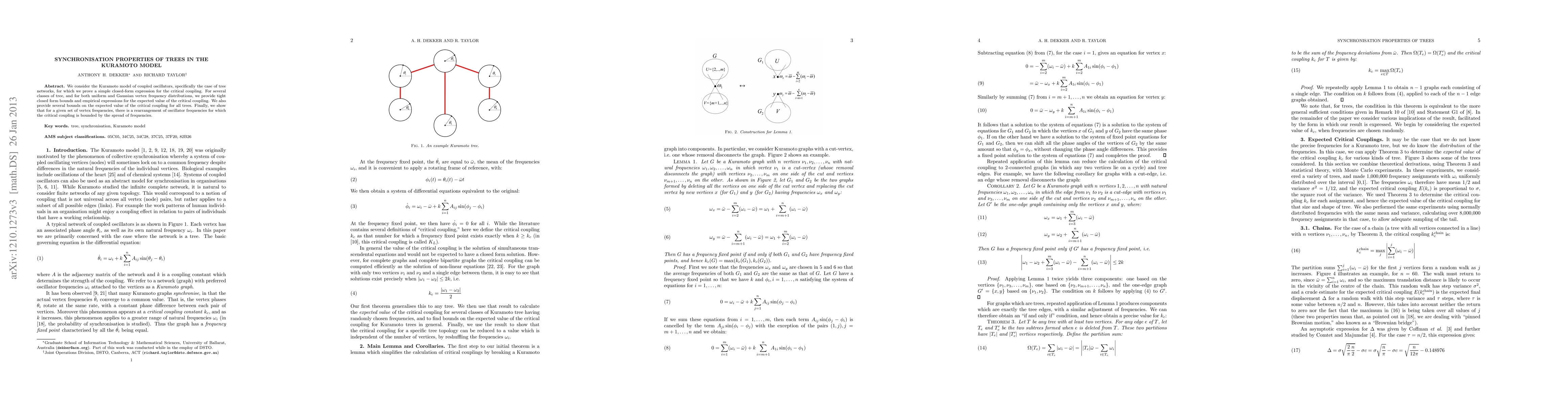 Researchers found a simple closed-form expression for critical coupling in tree networks within the Kuramoto model, providing bounds on expected values for different distributions of vertex frequencies.