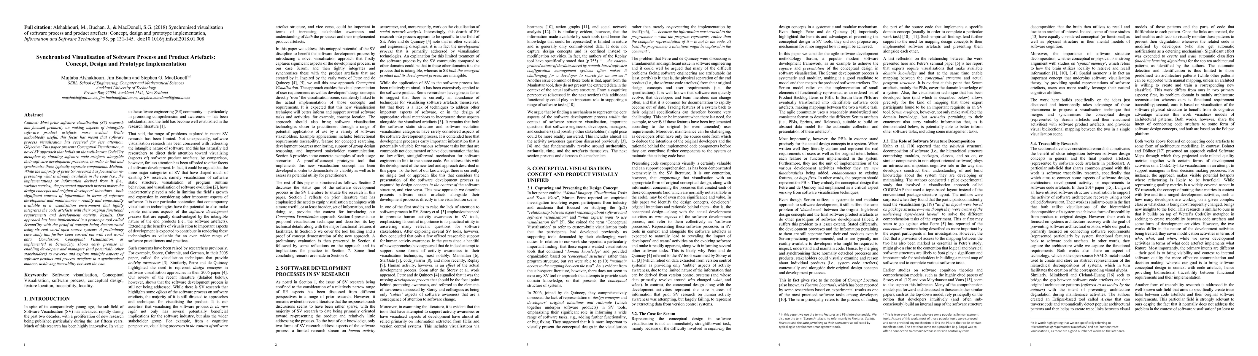 Context: Most prior software visualisation (SV) research has focused primarily on making aspects of intangible software product artefacts more evident. While undoubtedly useful, this focus has meant that software process visualisation has received far less attention. Objective: This paper presents Conceptual Visualisation, a novel SV approach that builds on the well-known CodeCity metaphor by situating software code artefacts alongside their software development processes, in order to link and synchronise these typically separate components. Method: While the majority of prior SV research has focused on representing what is already available in the code (i.e., the implementation) or information derived from it (i.e., various metrics), the presented approach instead makes the design concepts and original developers' intentions -- both significant sources of information in terms of software development and maintenance -- readily and contextually available in a visualisation environment that tightly integrates the code artefacts with their original functional requirements and development activity. Results: Our approach has been implemented in a prototype tool called ScrumCity with the proof of concept being demonstrated using six real-world open source systems. A preliminary case study has further been carried out with real world data. Conclusion: Conceptual Visualisation, as implemented in ScrumCity, shows early promise in enabling developers and managers (and potentially other stakeholders) to traverse and explore multiple aspects of software product and process artefacts in a synchronised manner, achieving traceability between the two.