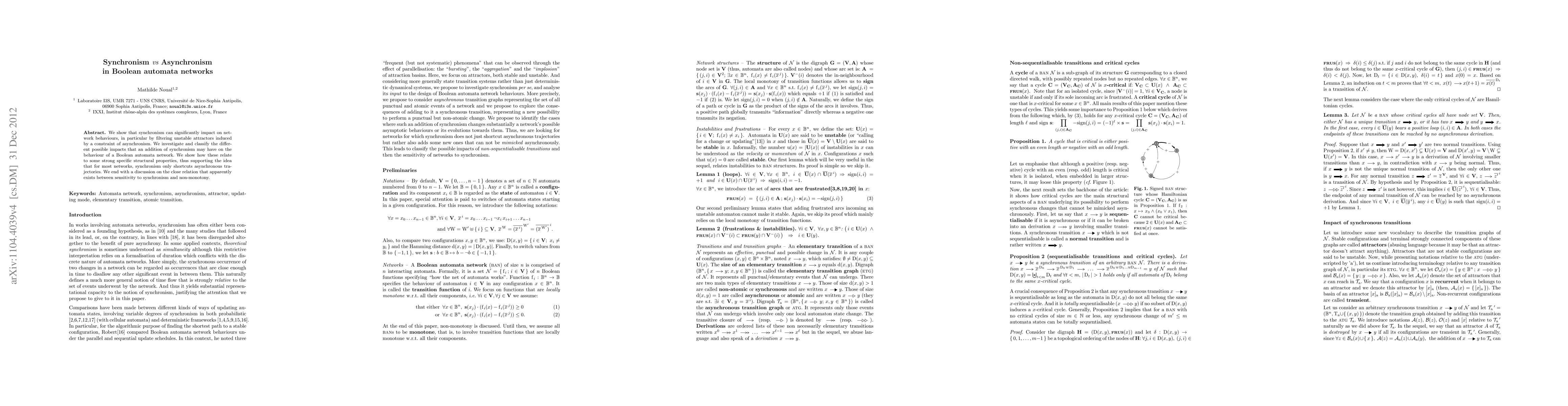 We show that synchronism can significantly impact on network behaviours, in particular by filtering unstable attractors induced by a constraint of asynchronism. We investigate and classify the different possible impacts that an addition of synchronism may have on the behaviour of a Boolean automata network. We show how these relate to some strong specific structural properties, thus supporting the idea that for most networks, synchronism only shortcuts asynchronous trajectories. We end with a discussion on the close relation that apparently exists between sensitivity to synchronism and non-monotony.