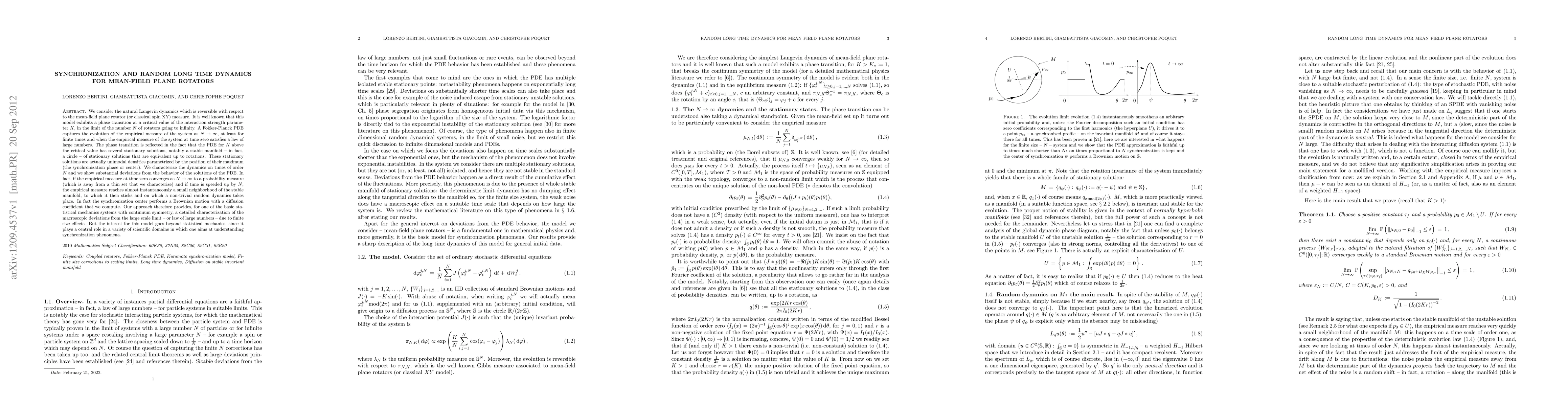 Researchers studied how a mean-field plane rotator model behaves as the number of rotators approaches infinity, finding that it exhibits synchronization behavior with a Brownian motion at the stable manifold, even when driven by finite size effects.