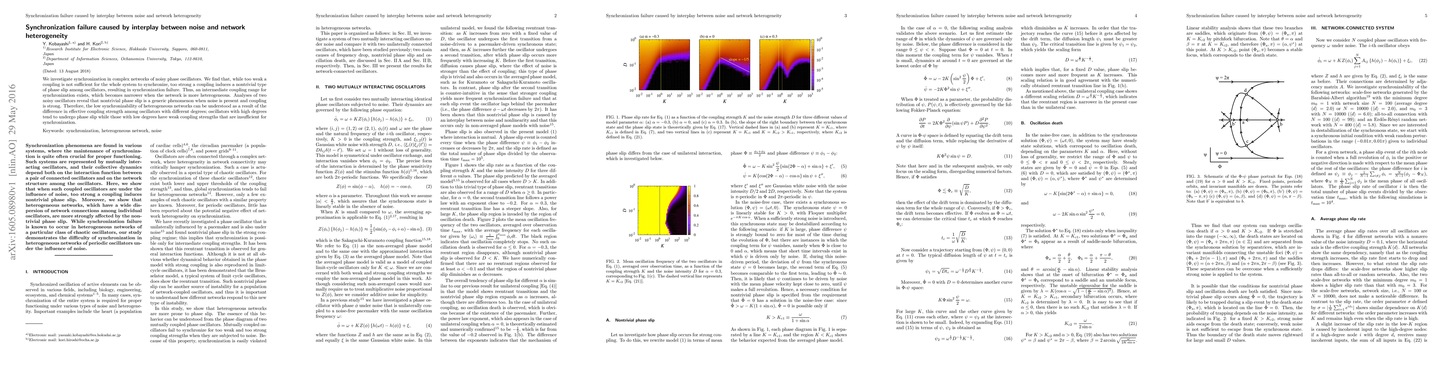 We investigate synchronization in complex networks of noisy phase oscillators. We find that, while too weak a coupling is not sufficient for the whole system to synchronize, too strong a coupling induces a nontrivial type of phase slip among oscillators, resulting in synchronization failure. Thus, an intermediate coupling range for synchronization exists, which becomes narrower when the network is more heterogeneous. Analyses of two noisy oscillators reveal that nontrivial phase slip is a generic phenomenon when noise is present and coupling is strong. Therefore, the low synchronizability of heterogeneous networks can be understood as a result of the difference in effective coupling strength among oscillators with different degrees; oscillators with high degrees tend to undergo phase slip while those with low degrees have weak coupling strengths that are insufficient for synchronization.