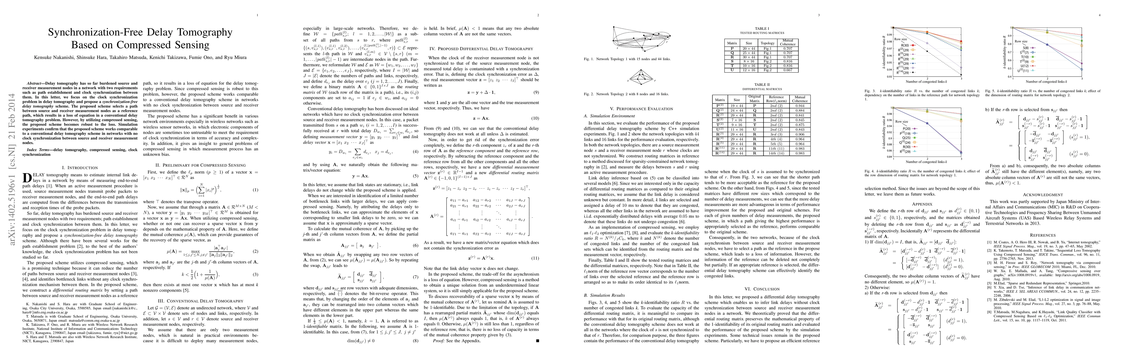 Researchers propose a synchronization-free delay tomography scheme using compressed sensing, reducing the need for clock synchronization between nodes in a network. The scheme works similarly to conventional methods in networks without synchronized clocks.