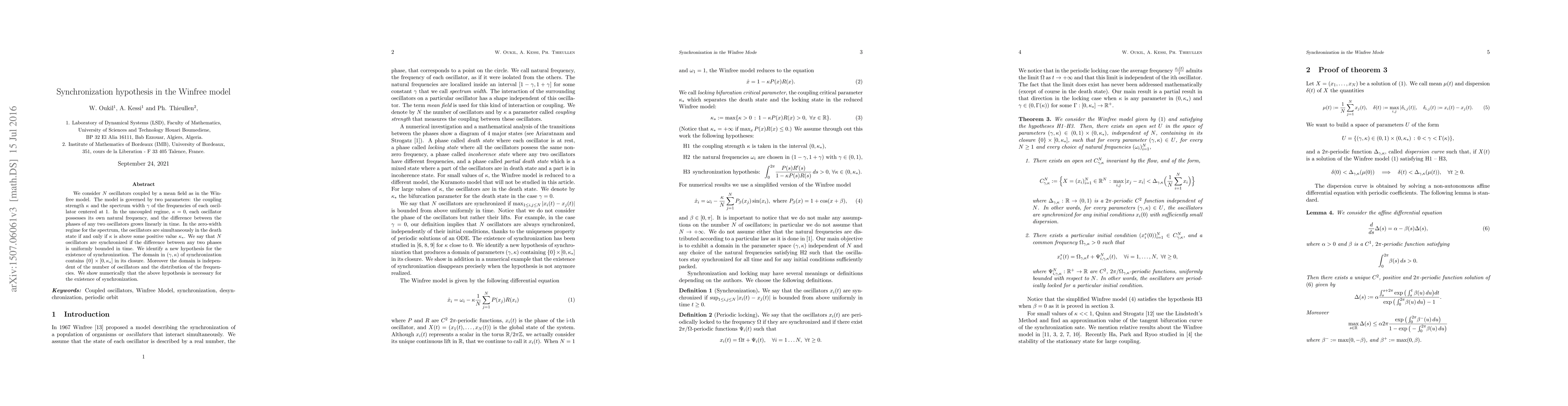 This research introduces a new synchronization hypothesis for the Winfree model, identifying a specific domain in the $(gamma, kappa)$ parameter space where synchronization can occur, independent of the number of oscillators and their frequency distribution. A numerical counter-example demonstrates the necessity of this hypothesis for synchronization.