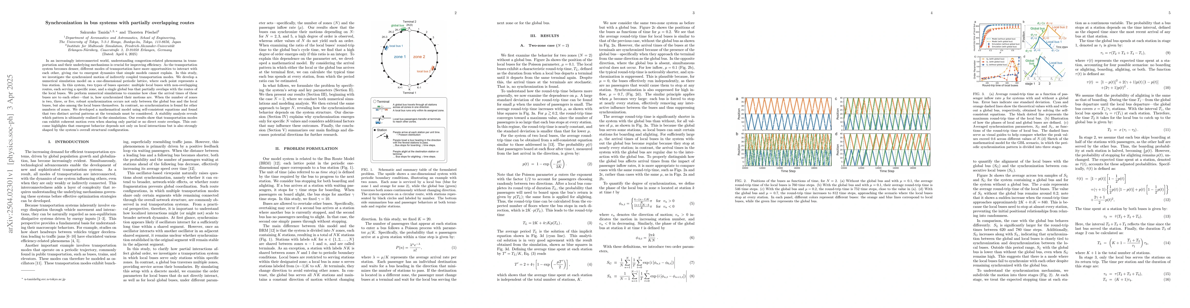 A study on bus systems found that even with partial route overlaps, local buses can synchronize their motions with a global bus, revealing the importance of system configuration in emergent behavior.