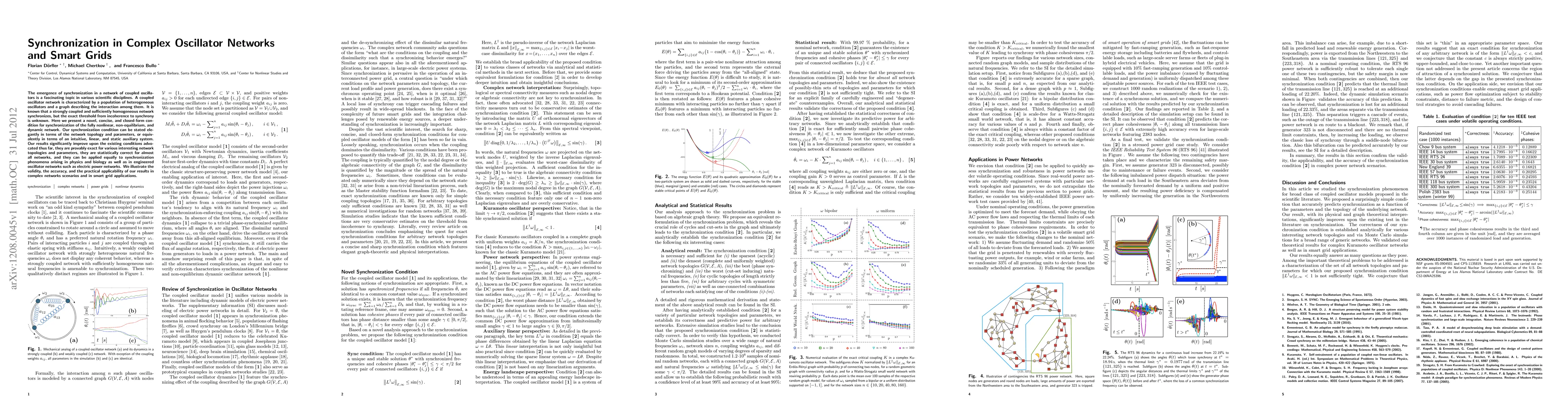 This paper presents a novel, closed-form condition for synchronization in complex oscillator networks, including smart grids, based on network topology and parameters. The proposed condition is exact for various network types and applicable to both natural and engineered systems, demonstrating improved accuracy over existing methods.