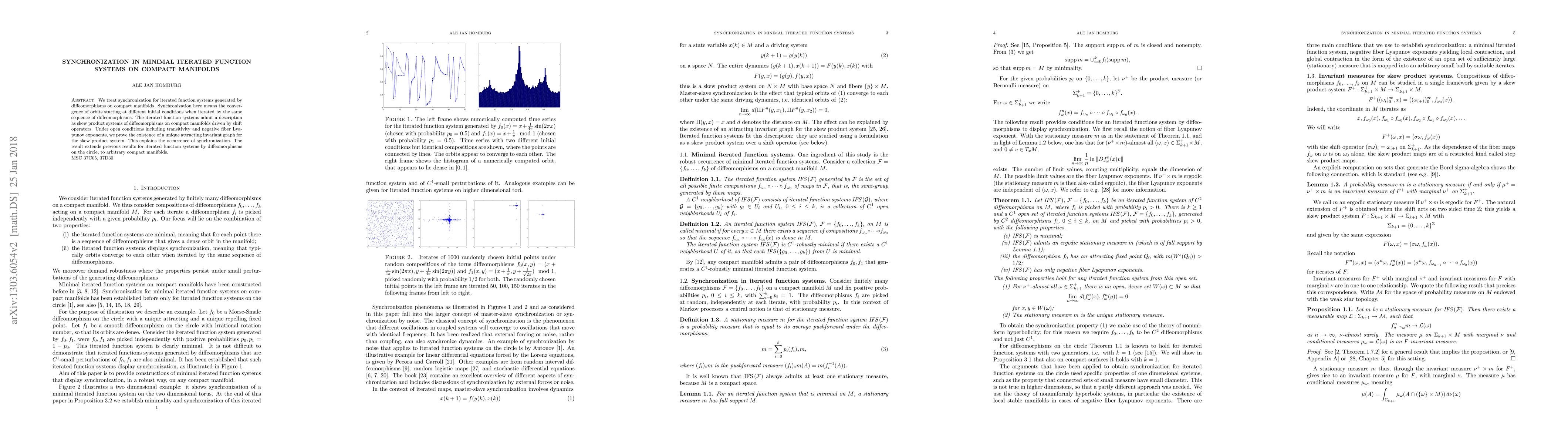 This paper investigates synchronization in iterated function systems on compact manifolds, proving the convergence of orbits under specific conditions. It establishes the existence of a unique attracting invariant graph for skew product systems, explaining synchronization and extending prior results to general manifolds.