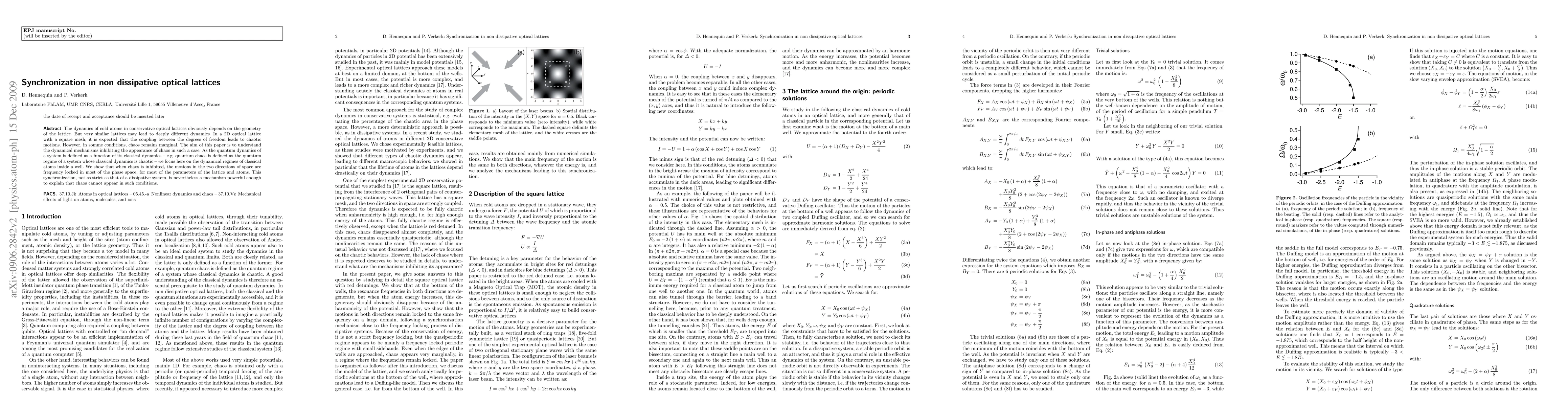 The dynamics of cold atoms in conservative optical lattices obviously depends on the geometry of the lattice. But very similar lattices may lead to deeply different dynamics. For example, in a 2D optical lattice with a square mesh, the sign of the detuning plays a crucial role: in the blue detuned case, trajectories of an atom inside a well are chaotic for high enough energies. On the contrary, in the red detuned case, chaos is completely inhibited inside the wells. Here, we study in details the dynamical regimes of atoms inside a well of a red detuned lattice, with the aim to understand the dynamical mechanisms leading to the disappearance of chaos. We show that the motions in the two directions of space are frequency locked in most of the phase space, for most of the parameters of the lattice and atoms. This synchronization, not as strict as that of a dissipative system, is nevertheless a mechanism powerful enough to explain that chaos cannot appear in red detuned lattices.
