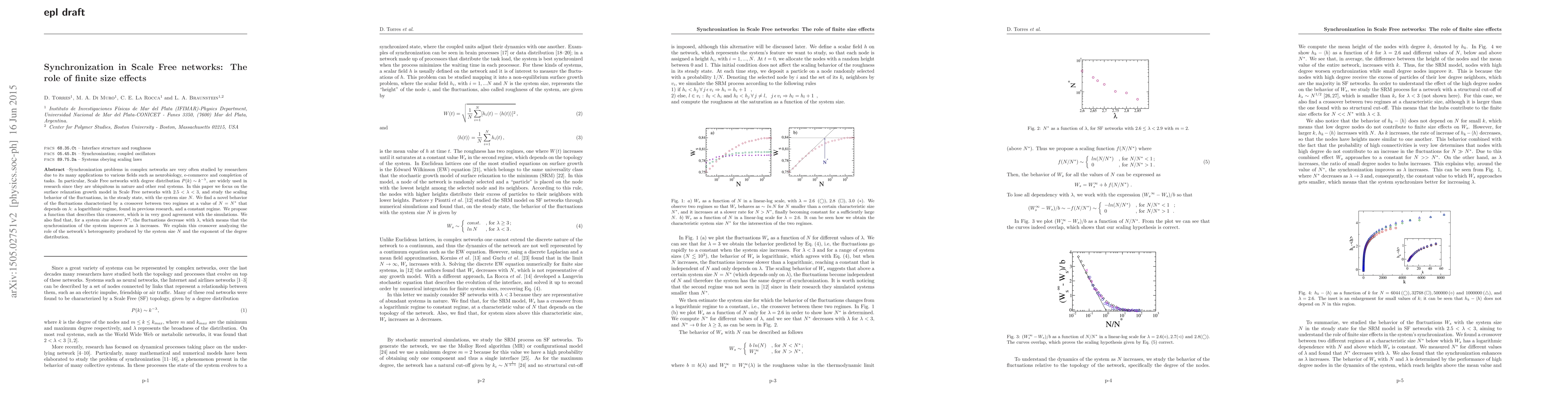 This paper investigates synchronization in Scale Free networks, focusing on the scaling behavior of fluctuations in the steady state. It reveals a novel crossover between logarithmic and constant fluctuation regimes, with the transition point depending on the degree distribution exponent $\lambda$. The study shows that synchronization improves as $\lambda$ increases for larger system sizes.