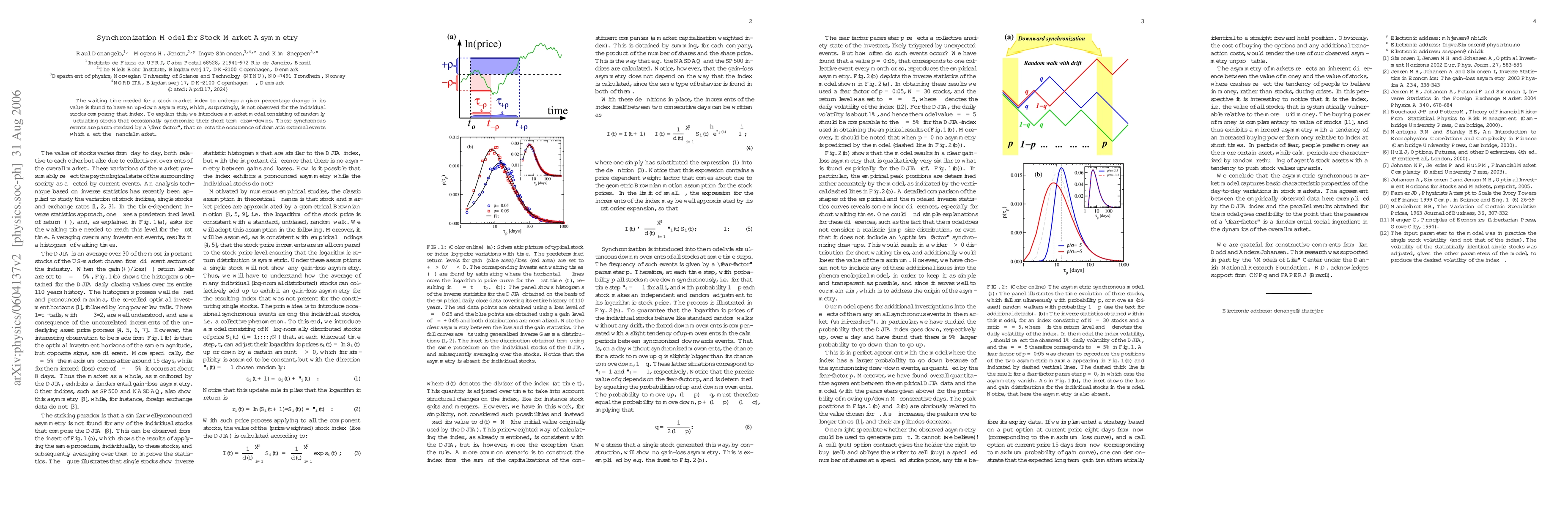 The waiting time needed for a stock market index to undergo a given percentage change in its value is found to have an up-down asymmetry, which, surprisingly, is not observed for the individual stocks composing that index. To explain this, we introduce a market model consisting of randomly fluctuating stocks that occasionally synchronize their short term draw-downs. These synchronous events are parameterized by a ``fear factor'', that reflects the occurrence of dramatic external events which affect the financial market.