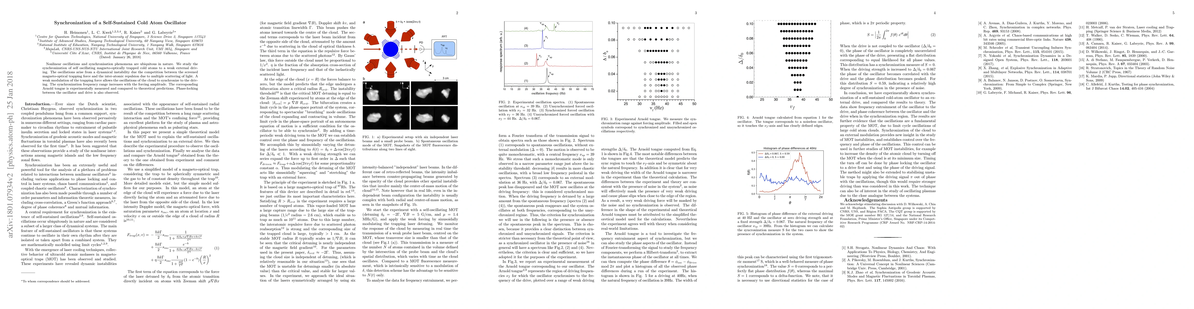 This paper investigates the synchronization of self-oscillating cold atom clouds driven by a weak external modulation, revealing increased synchronization frequency ranges with higher forcing amplitudes. Experimental results match theoretical predictions, showing phase-locking behavior.