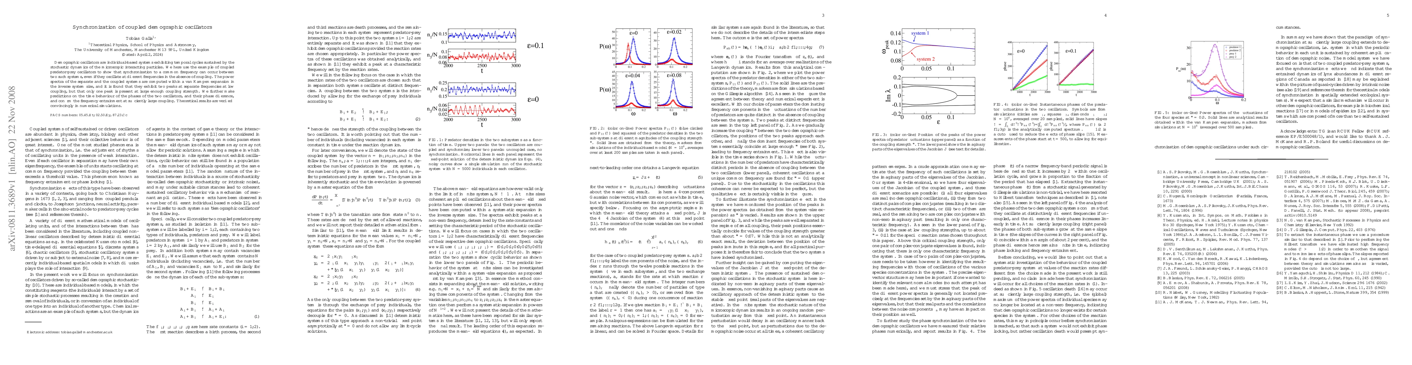 This paper demonstrates that coupled demographic oscillators, such as predator-prey systems, can synchronize to a common frequency despite initial oscillations at different frequencies. Theoretical analysis and numerical simulations show that synchronization occurs at sufficiently large coupling strength, evidenced by a transition from two distinct peaks to a single peak in the power spectrum.