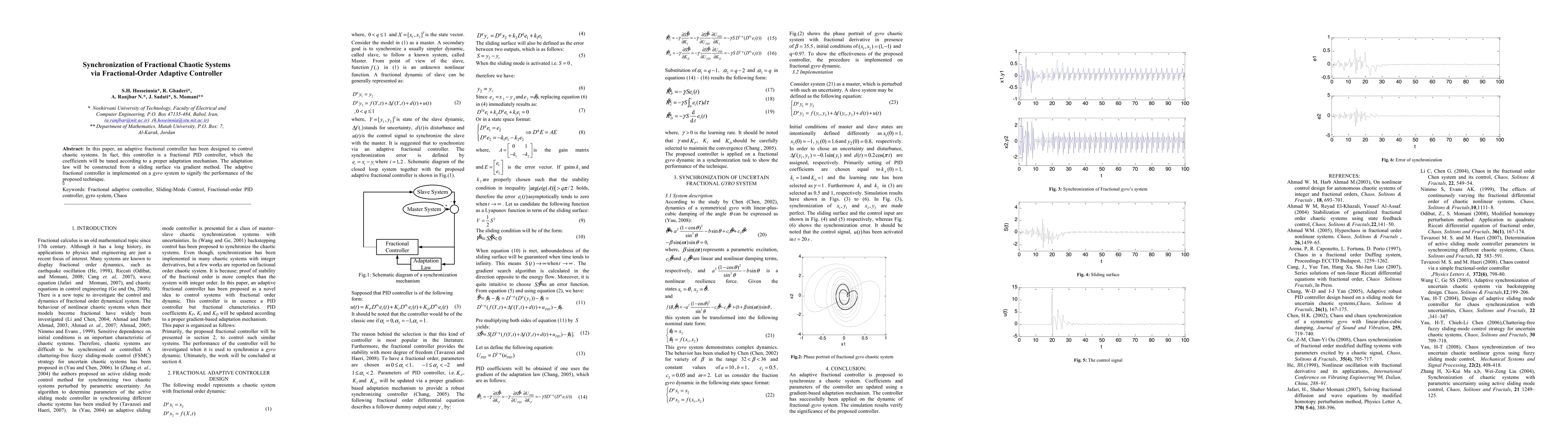 This paper designs an adaptive fractional PID controller to synchronize fractional chaotic systems, tuning its coefficients via a gradient method based on a sliding surface. The effectiveness of the proposed technique is demonstrated through implementation on a gyro system.