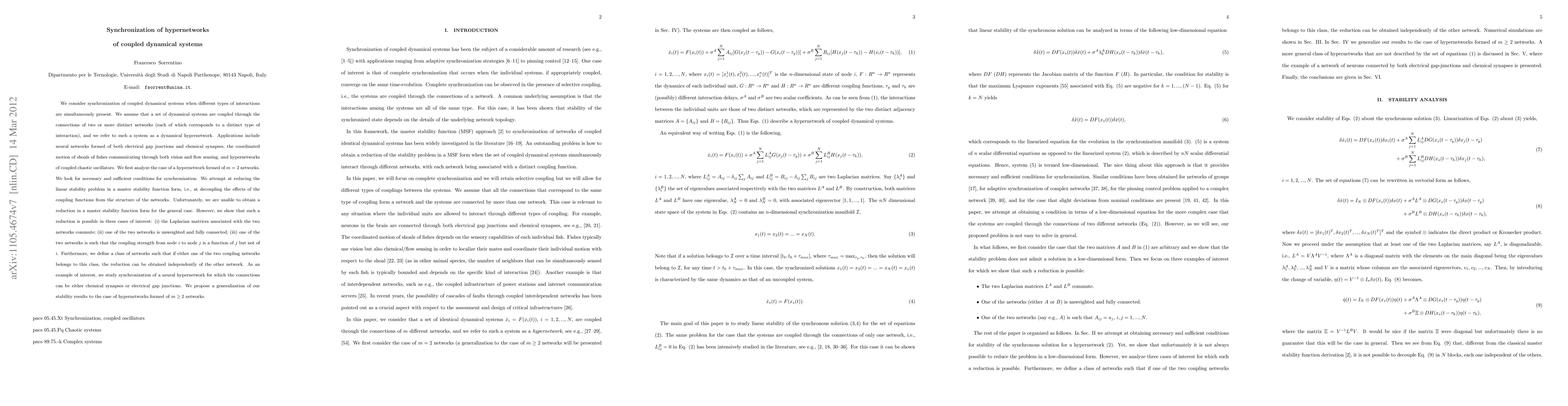 Research investigates synchronization of coupled dynamical systems across multiple networks, finding conditions for synchronization in specific cases and proposing a generalization for hypernetworks.