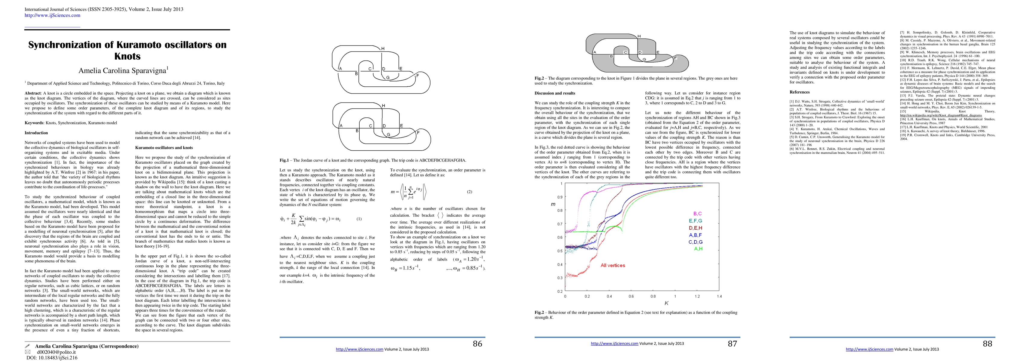 Researchers studied how oscillators on a knotted structure synchronize with each other using the Kuramoto model, finding that synchronization patterns vary across different regions of the knot diagram.