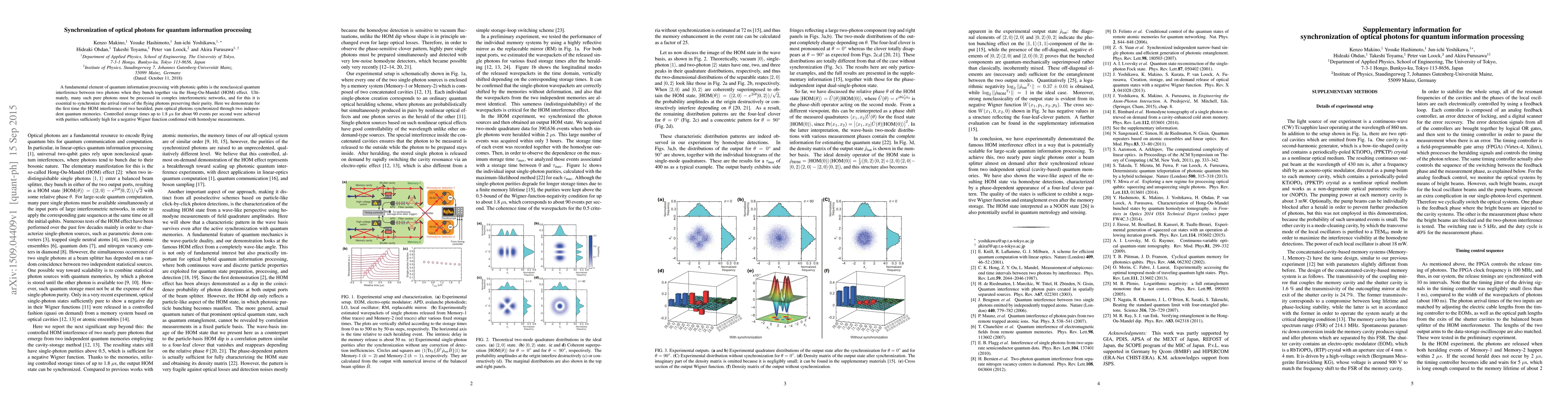 This paper demonstrates the synchronization of two heralded, pure optical photons via independent quantum memories, achieving controlled storage times up to 1.8 microseconds. The study confirms the preservation of photon purity through the Hong-Ou-Mandel interference effect, validated by homodyne measurements showing a negative Wigner function.
