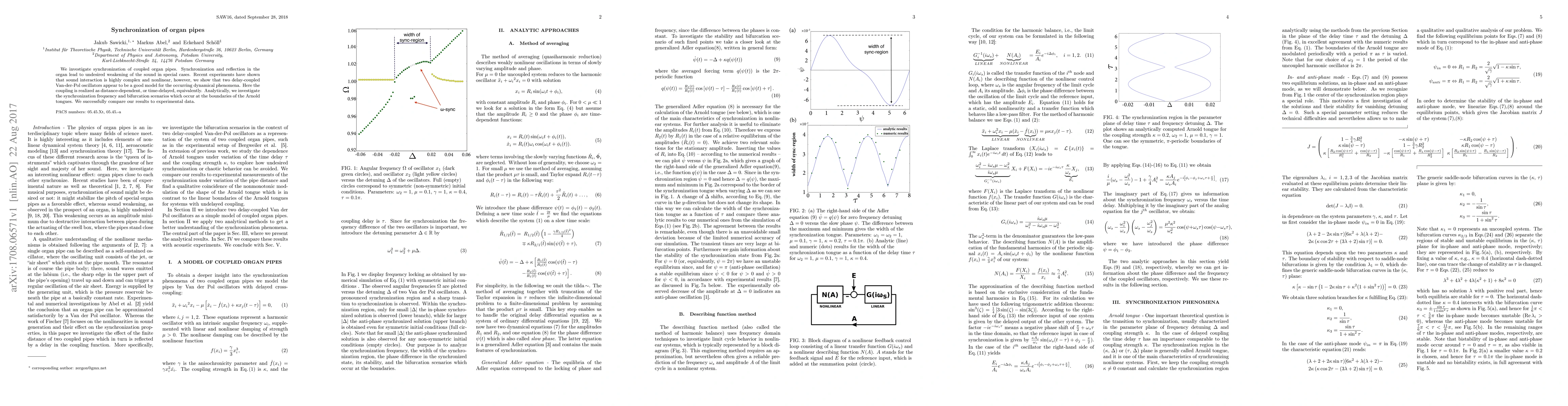 Researchers model organ pipe synchronization using delay-coupled Van-der-Pol oscillators, finding that certain frequencies lead to desired harmonization, while others result in sound weakening.