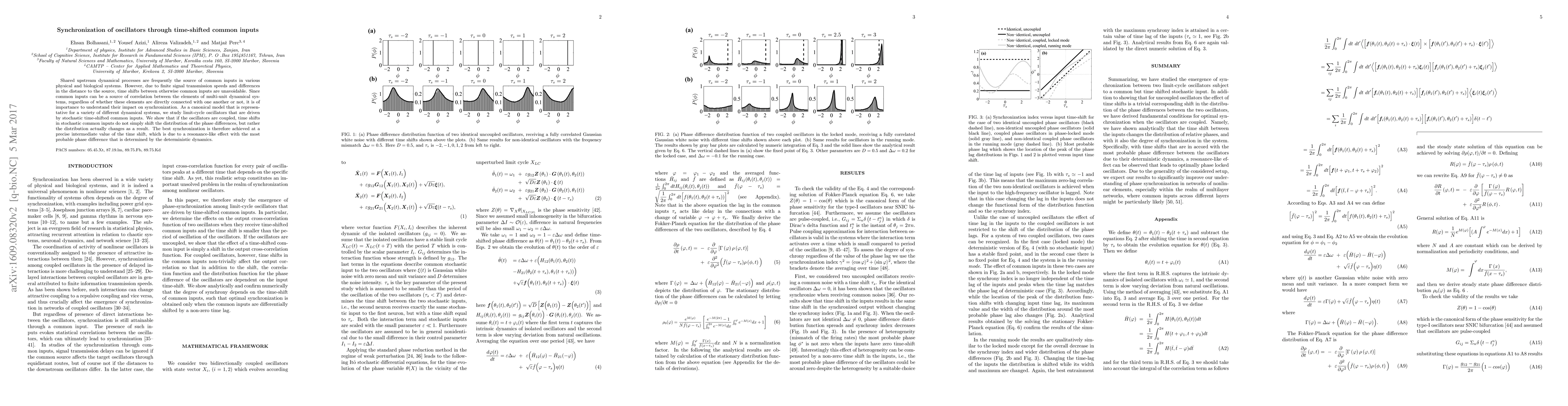 Research shows that time-shifted common inputs to oscillators can lead to synchronization at a specific intermediate value of the shift, due to resonance-like effects.