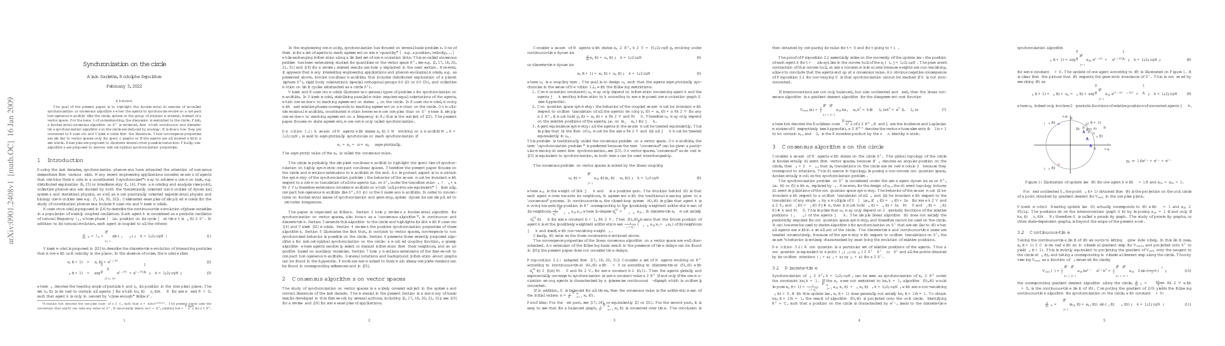 The goal of the present paper is to highlight the fundamental differences of so-called synchronization or consensus algorithms when the agents to synchronize evolve on a compact homogeneous manifold (like the circle, sphere or the group of rotation matrices), instead of a vector space. For the benefit of understanding, the discussion is restricted to the circle. First, a fundamental consensus algorithm on R^n is reviewed, from which continuous- and discrete-time synchronization algorithms on the circle are deduced by analogy. It is shown how they are connected to Kuramoto and Vicsek models from the literature. Their convergence properties are similar to vector spaces only for specific graphs or if the agents are all located within a semicircle. Examples are proposed to illustrate several other possible behaviors. Finally, new algorithms are proposed to recover (almost-)global synchronization properties.