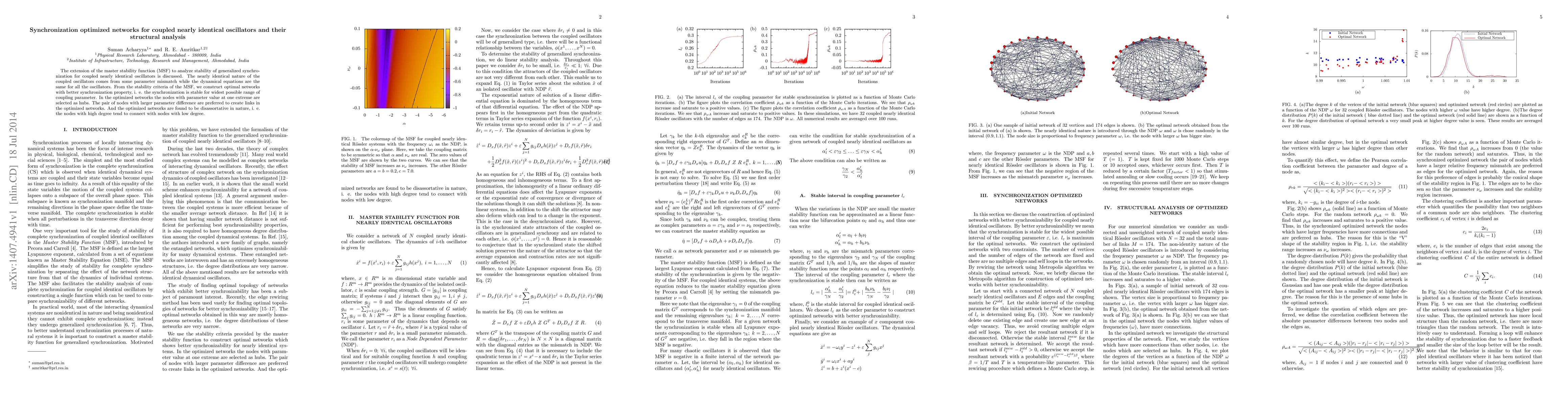 The extension of the master stability function (MSF) to analyze stability of generalized synchronization for coupled nearly identical oscillators is discussed. The nearly identical nature of the coupled oscillators comes from some parameter mismatch while the dynamical equations are the same for all the oscillators. From the stability criteria of the MSF, we construct optimal networks with better synchronization property, i. e. the synchronization is stable for widest possible range of coupling parameter. In the optimized networks the nodes with parameter value at one extreme are selected as hubs. The pair of nodes with larger parameter difference are preferred to create links in the optimized networks. And the optimized networks are found to be disassortative in nature, i. e. the nodes with high degree tend to connect with nodes with low degree.