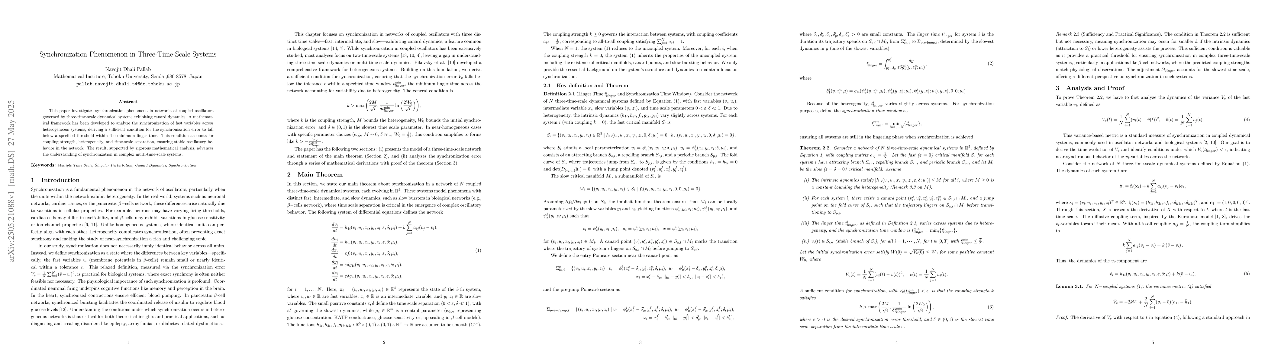 A mathematical framework was developed to analyze synchronization in heterogeneous networks of coupled oscillators with three-time-scale dynamics, focusing on canard dynamics.