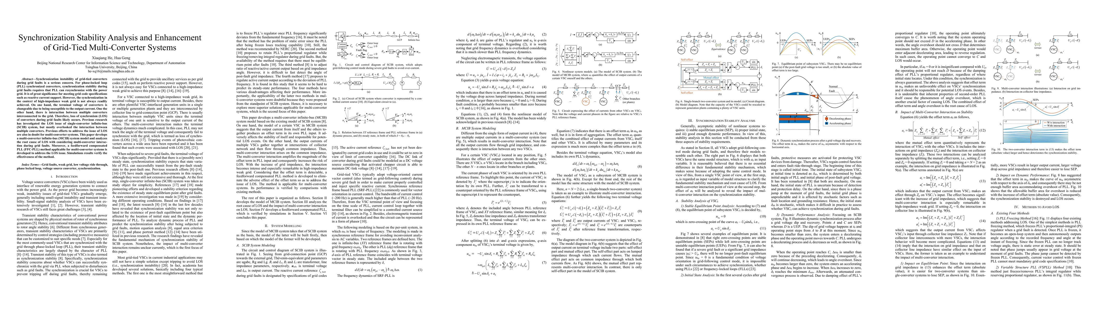 The paper presents a multi-converter infinite-bus (MCIB) system model and a feedforward compensated PLL (FFC-PLL) method, providing a novel approach to address loss of synchronism (LOS) in multi-converter systems during grid faults.