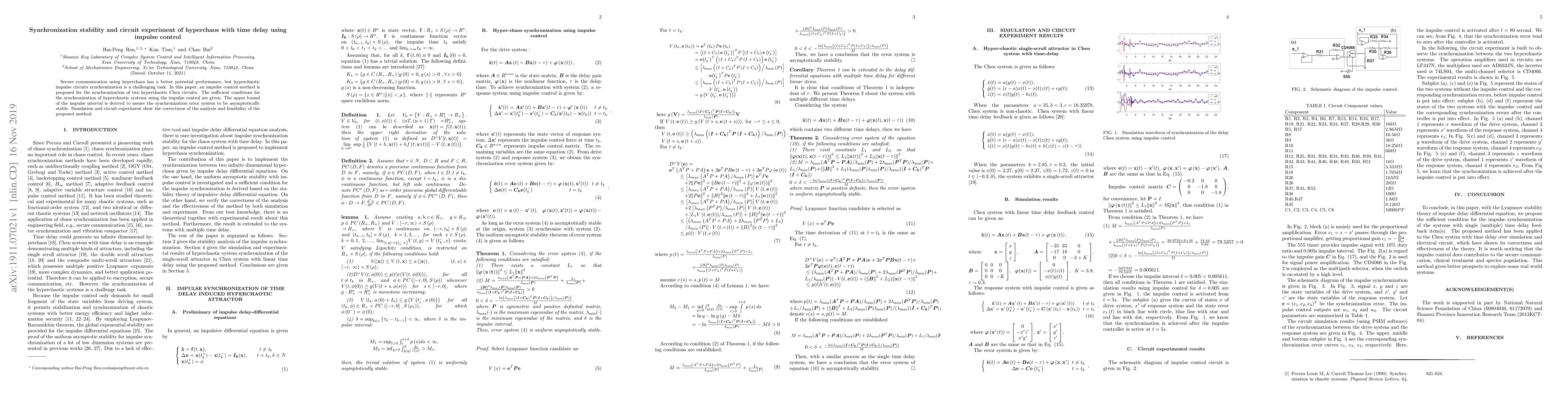 Researchers propose a method to synchronize hyperchaotic systems using impulse control, providing sufficient conditions for synchronization and an upper bound on the impulse interval to ensure stability.