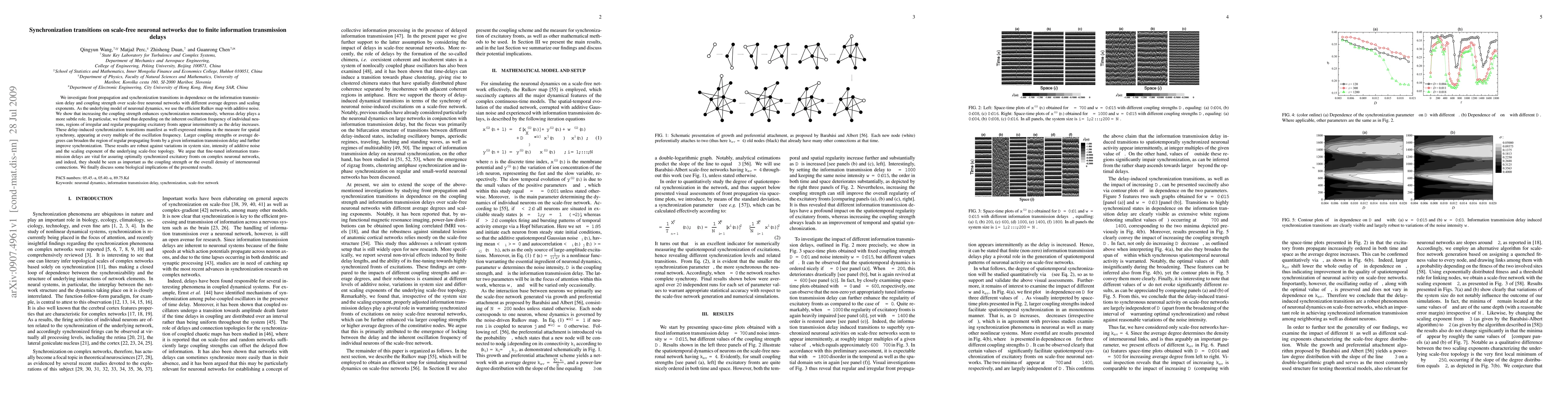 This study explores synchronization transitions in scale-free neuronal networks under varying information transmission delays and coupling strengths, using the Rulkov map model. It finds that while increased coupling strength consistently enhances synchronization, delays induce complex transitions, leading to regions of irregular and regular front propagation, with synchronization minima appearing at multiples of the neuron's oscillation frequency.