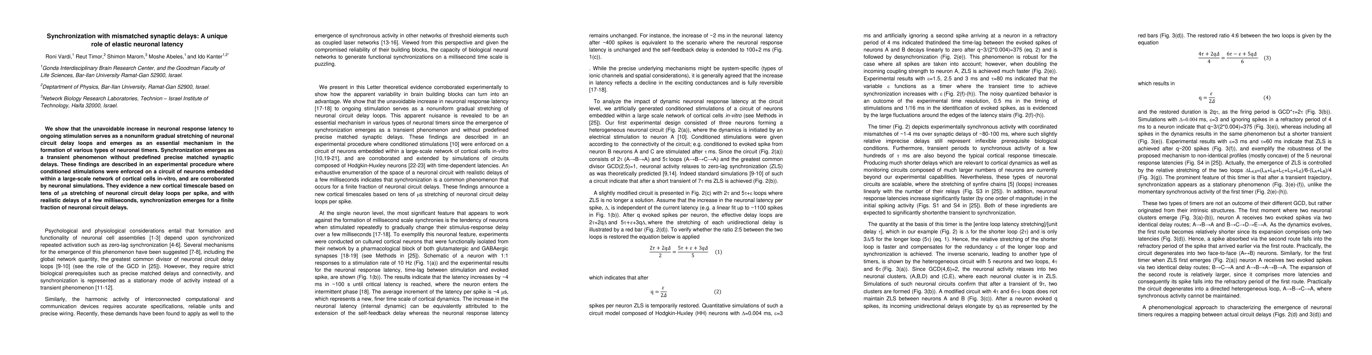 We show that the unavoidable increase in neuronal response latency to ongoing stimulation serves as a nonuniform gradual stretching of neuronal circuit delay loops and emerges as an essential mechanism in the formation of various types of neuronal timers. Synchronization emerges as a transient phenomenon without predefined precise matched synaptic delays. These findings are described in an experimental procedure where conditioned stimulations were enforced on a circuit of neurons embedded within a large-scale network of cortical cells in-vitro, and are corroborated by neuronal simulations. They evidence a new cortical timescale based on tens of microseconds stretching of neuronal circuit delay loops per spike, and with realistic delays of a few milliseconds, synchronization emerges for a finite fraction of neuronal circuit delays.