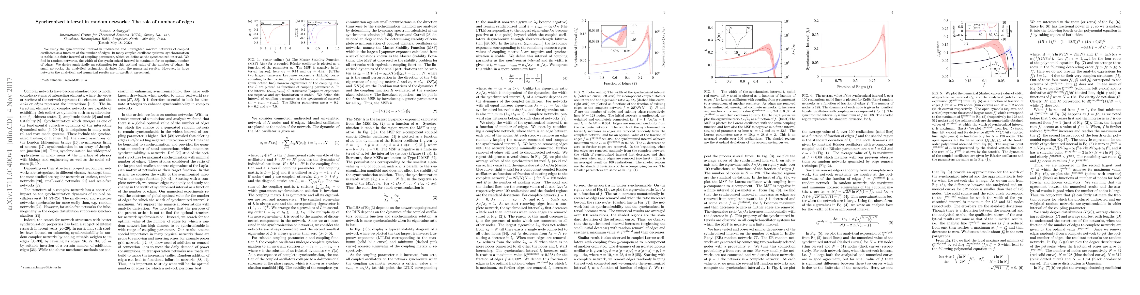 This paper investigates the synchronized interval in random networks of coupled oscillators, finding that the interval's width is maximized at an optimal number of edges. The authors derive an analytical estimation for this optimal edge count, which aligns well with numerical results in large networks but shows deviation in smaller ones.
