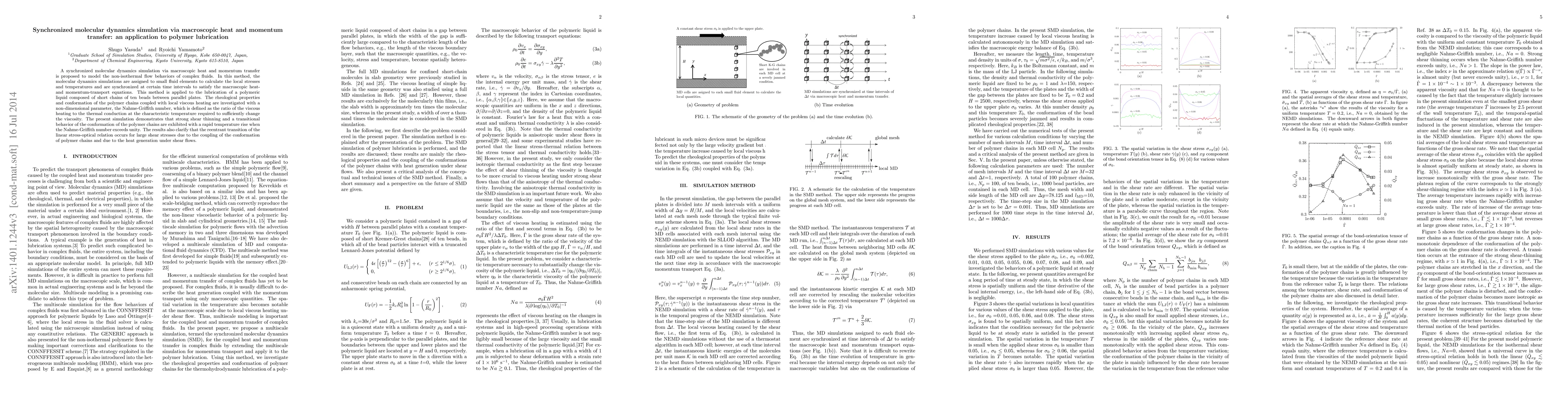 This paper proposes a synchronized molecular dynamics simulation method to study non-isothermal flow behaviors in complex fluids, applied to polymer lubrication. It reveals strong shear thinning and conformational transitions in polymer chains under rapid heating, highlighting the reentrant transition in the stress-optical relation due to polymer conformation and heat generation.