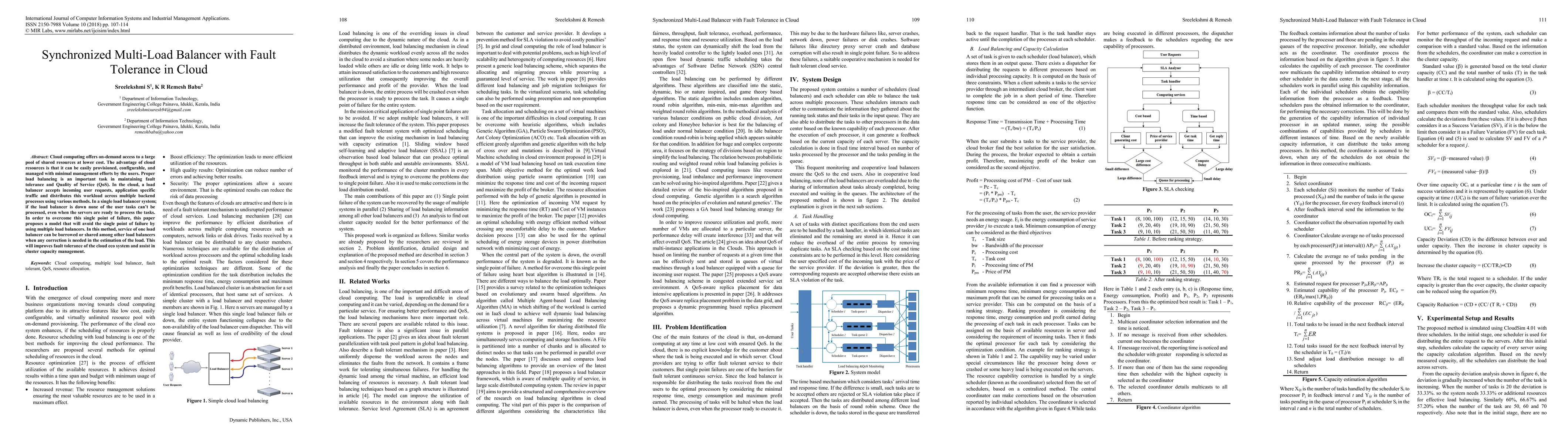 Summary: This research proposes a synchronized multi-load balancer system that shares services among load balancers to improve load estimation accuracy. It incorporates fault tolerance to ensure reliability during corrections.